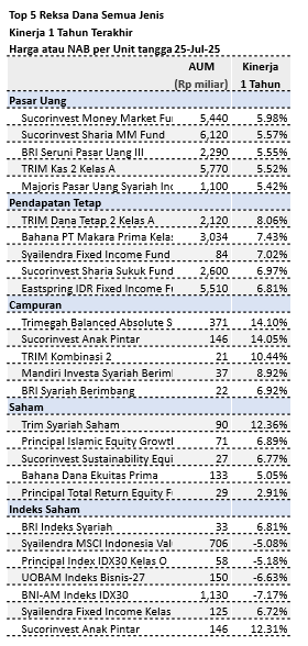Top 5 Kinerja 1 Tahun Terakhir Reksa Dana Semua Jenis