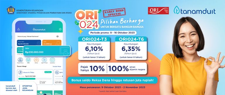 SBN seri ORI024 dengan jenis kupon tetap (fixed rate) 6,10% (T3) dan 6,35% (T6) per tahun resmi rilis. Kamu dapat membelinya pada masa penawaran 9 Oktober – 2 November 2023. Kamu juga berkesempatan memperoleh promo menarik dengan berinvestasi ORI024 di tanamduit, lho!