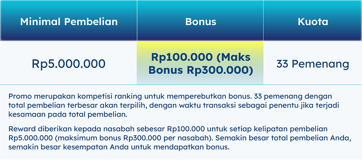 3. Bonus berupa unit penyertaan reksa dana dengan ketentuan sebagai berikut: